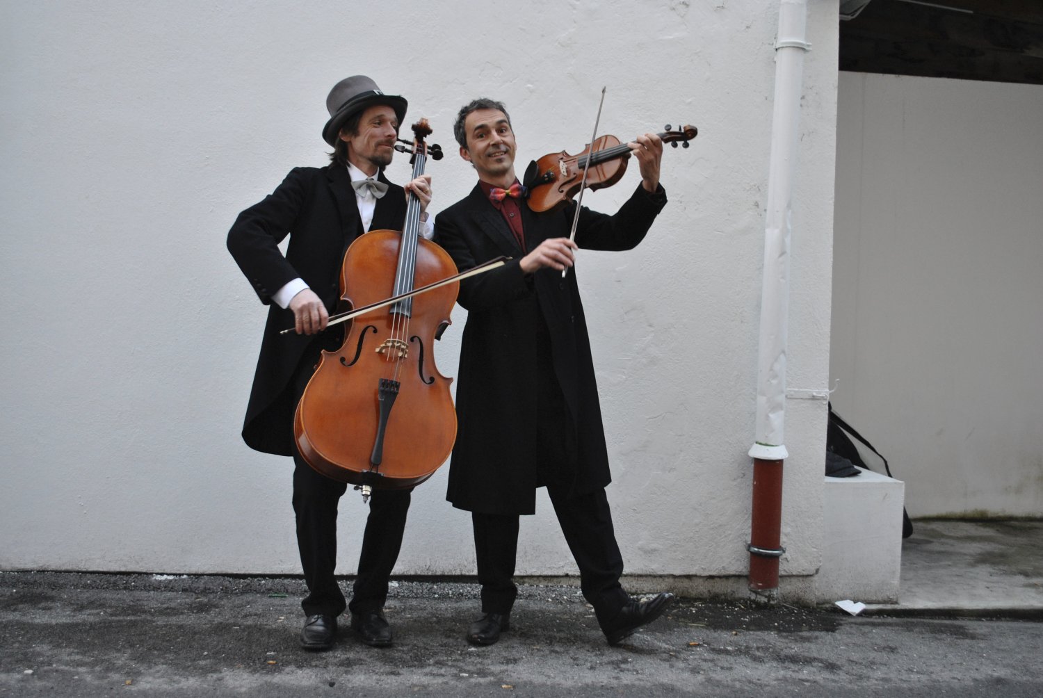 Auf der Bühne heizten Ratz und Fatz den Zuhörern mit ständig wechselnden Melodien und Rhythmen ein. Unterstützt wurden sie dabei vom Streicherensemble rund um Peter Rifesser und dem Kinderchor der Musikschule Eppan unter der Leitung von Elisabeth Oberhammer.